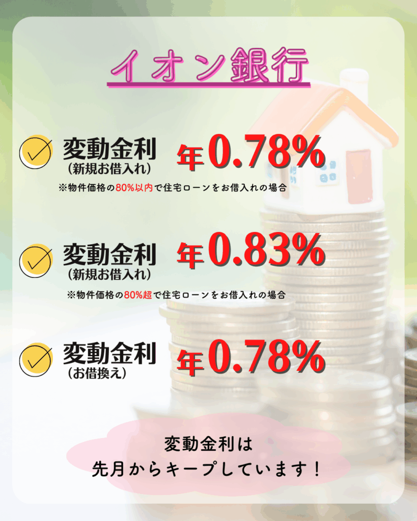 イオン銀行さんの住宅ローンとフラット35のご案内です。